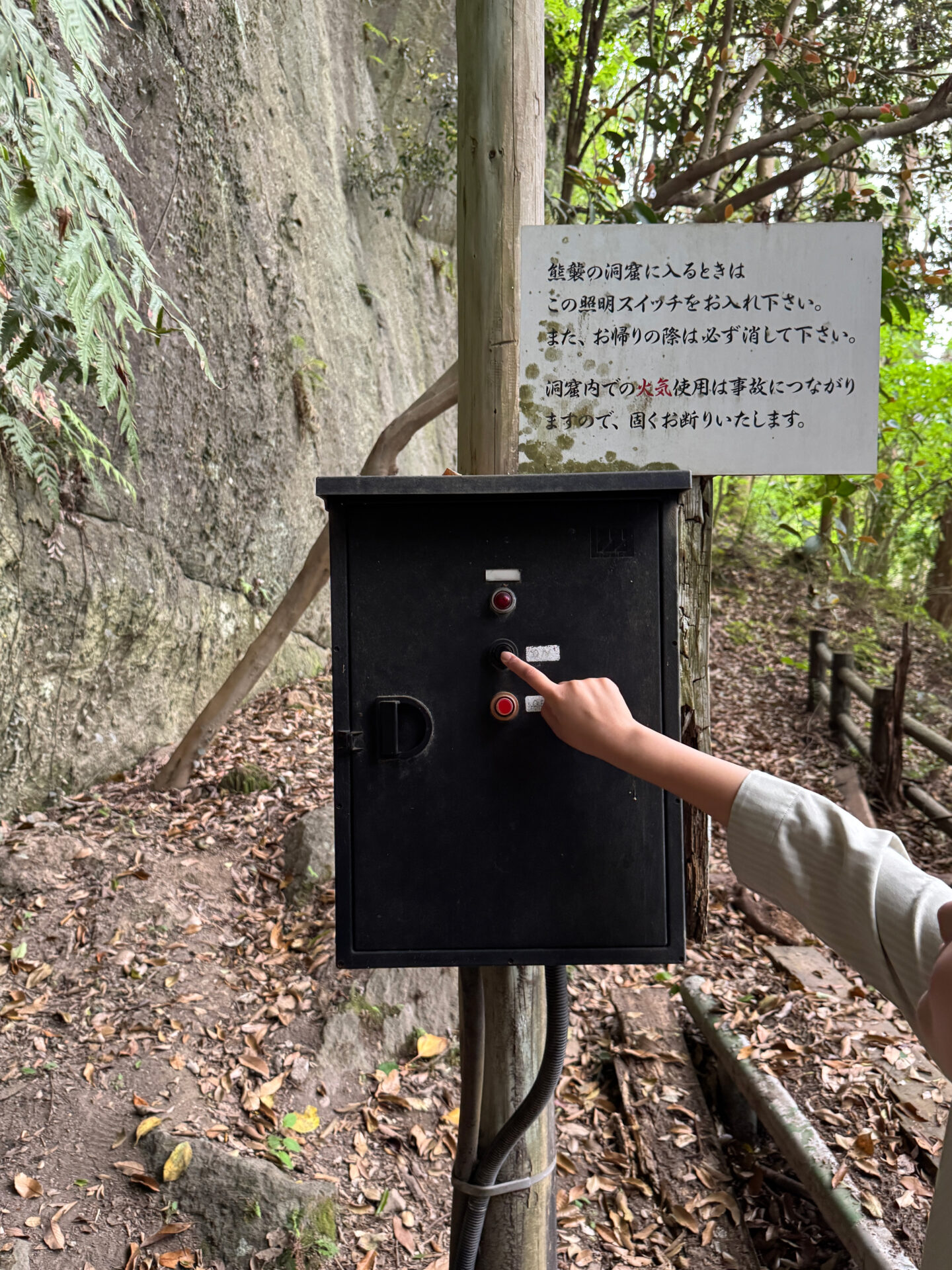 【注意!】穴に入る前に、外のスイッチをONにするのをお忘れなく!帰る時は必ずOFFにしてくださいね。