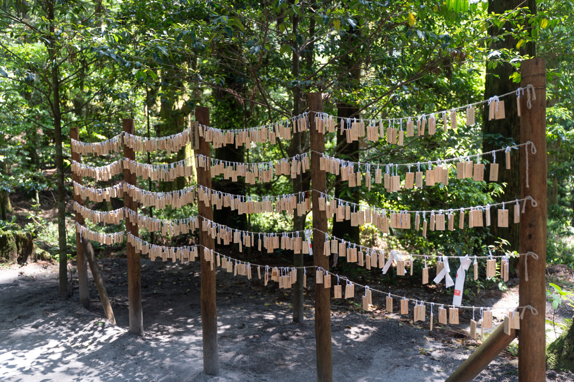 長い石段を登って少し歩くと、白木の鳥居が見えてきます。