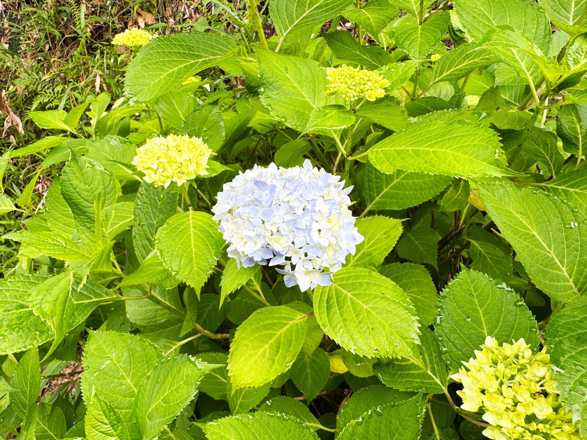 あじさいはまだ1分咲き。でも、しっかり準備している様子で、蕾がぷっくり膨らんでました。
