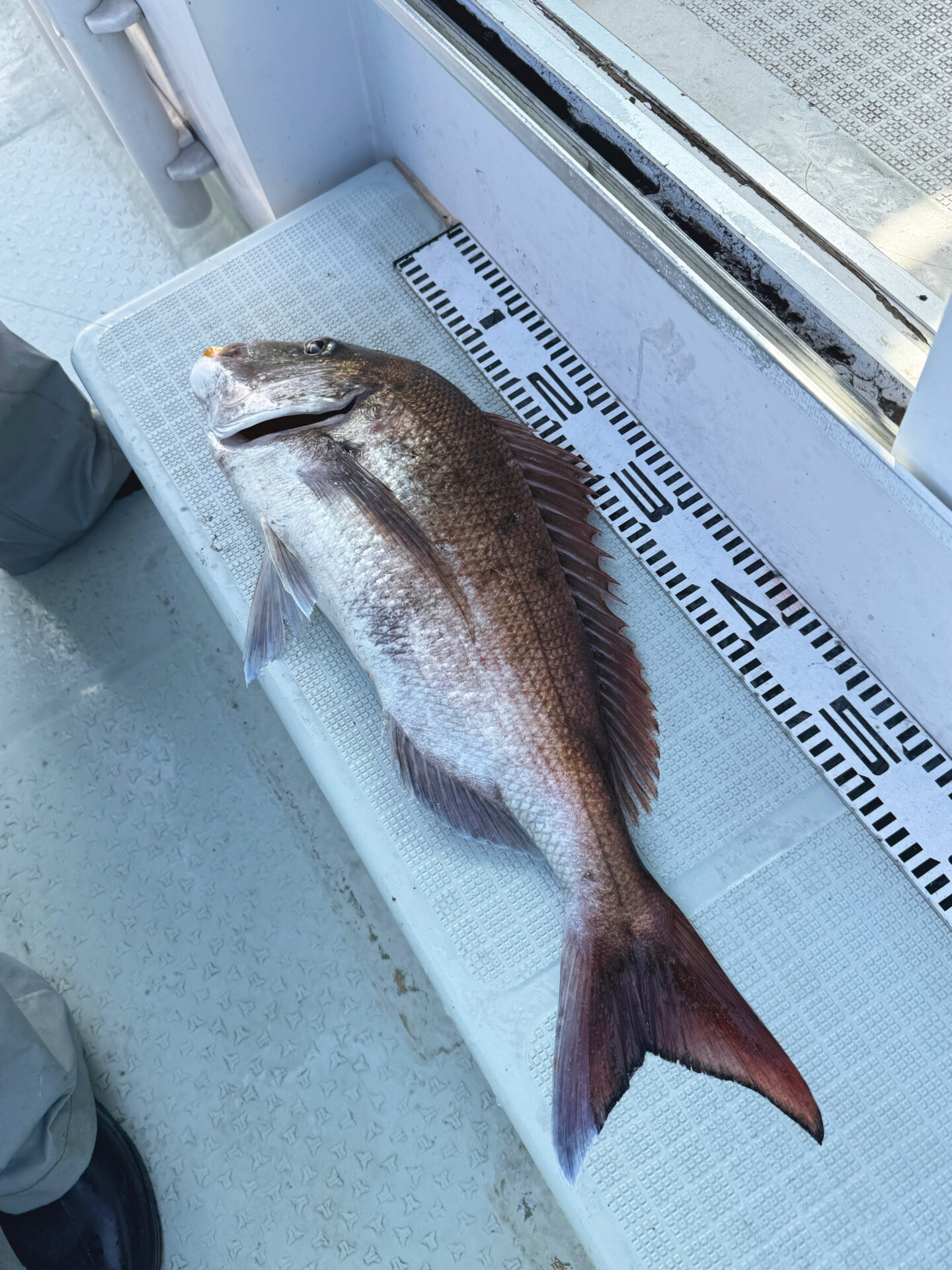ついに上がってきたのは——なんと60cmオーバーの立派な真鯛!!