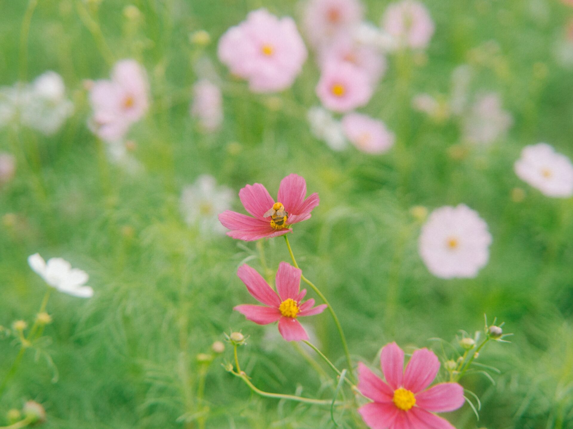 ピンクや白、淡い紫の花々が風に揺れる様子は、まさに秋を感じさせる光景です🌼