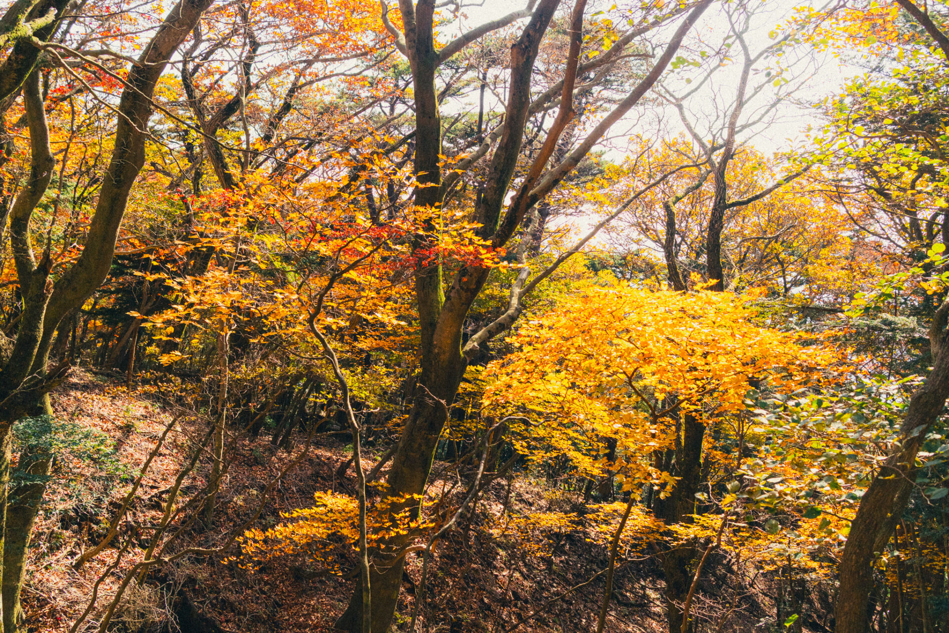 赤や黄色や緑が混在しながら、中腹あたりからはほとんど紅葉してきているように感じました!