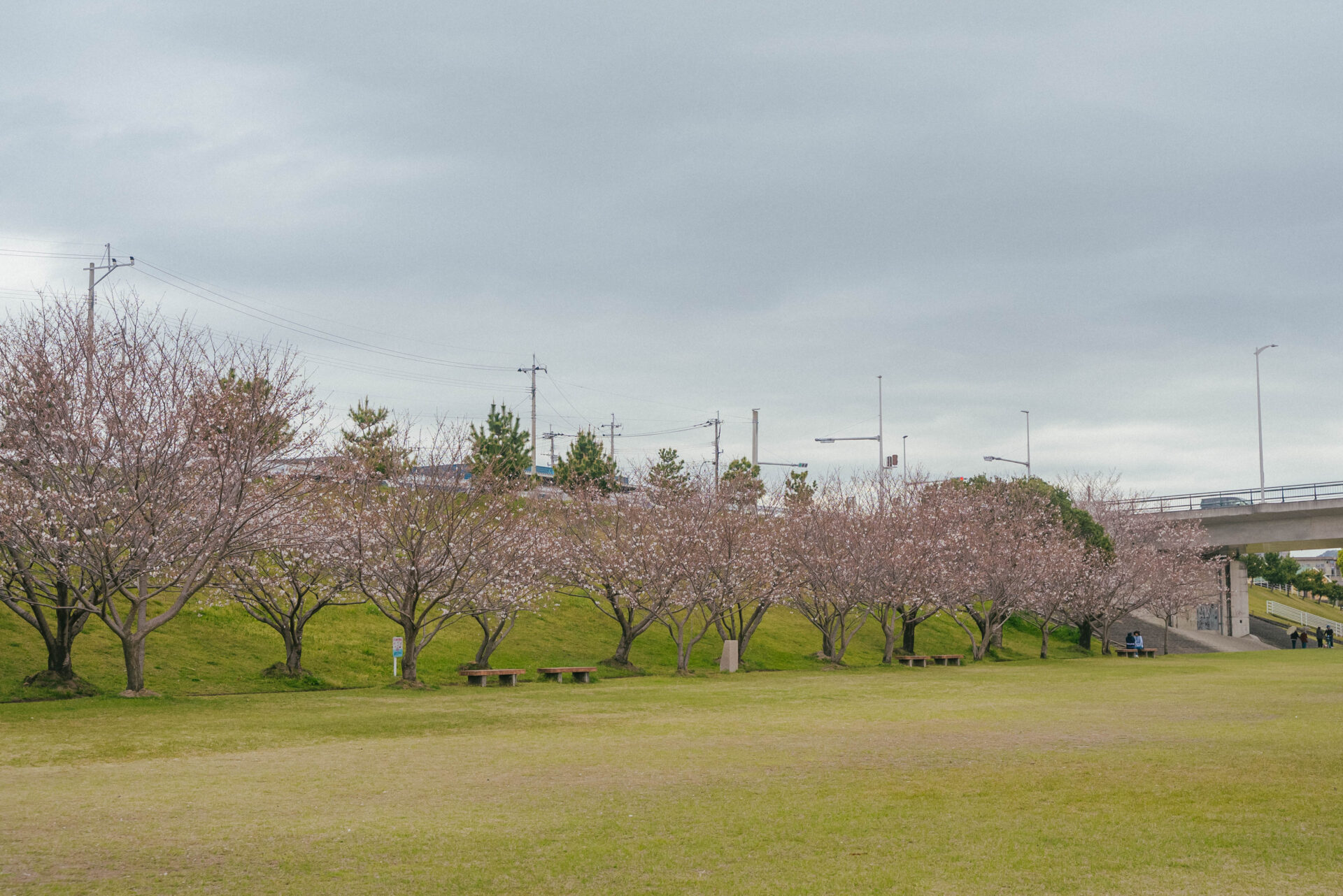 天降川の両岸に整備された河川公園には広々とした芝生スペースと桜並木があり、お花見シーズンには多くの人で賑わいます😊🌿