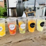 They use seasonal fruits in their fruit sandwiches, crepes, and parfaits, and also offer a wide variety of drinks, including fruit juices, smoothies, and floats.