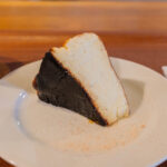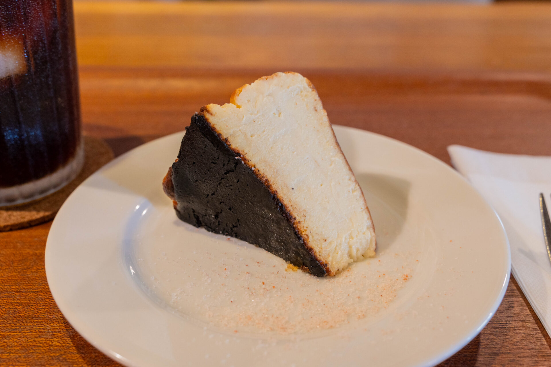 バスクチーズケーキのお皿には、ほんのりピンク色のヒマラヤ岩塩がまぶされており、