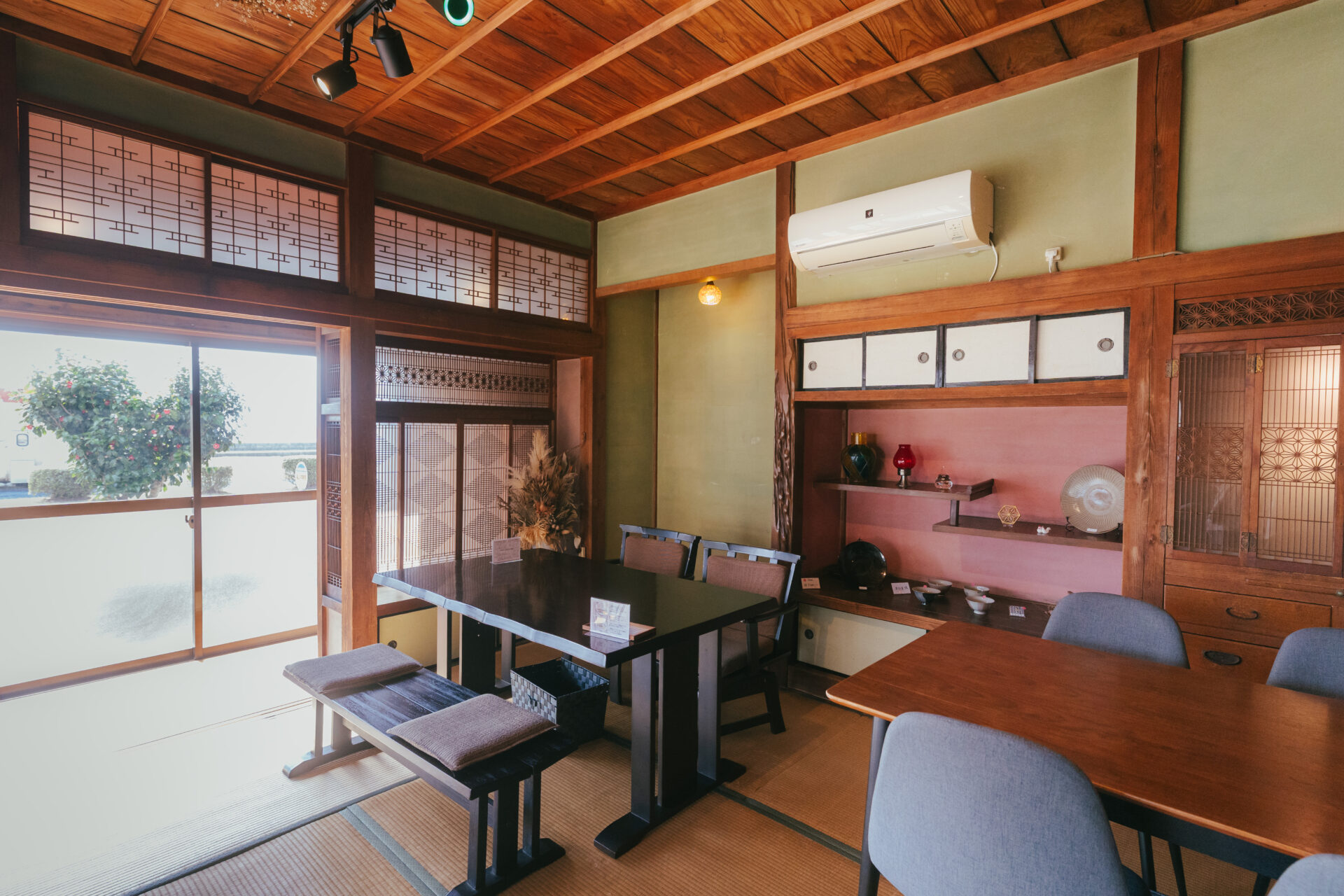 店内は組子細工がふんだんにあしらわれ、古民家ならではの落ち着きとホッとするような空間で、ゆったりとした時間を過ごせます🌿