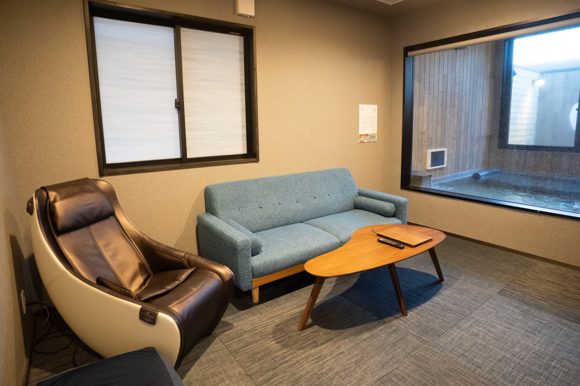 すべてのスペースがバリアフリー設計となっており、駐車場から露天風呂に至るまで段差が一切なし。扉幅も80cmを確保しているため、車椅子でもスムーズに移動できます。浴槽や椅子の高さも立ち上がりやすいよう配慮されており、介助が必要な方や高齢の方でも安心して利用できるつくりになっています。