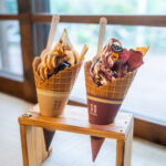 また、ソフトクリームのテイクアウトも大人気。炭火自家焙煎のコーヒー豆を使ったコーヒーゼリーとソースがのったオリジナルのコーヒーソフトは特におすすめです。全てのソフトクリームには自家製シリアルバーのトッピング付きで、食感も楽しめます。季節ごとに登場する期間限定メニューも見逃せません。