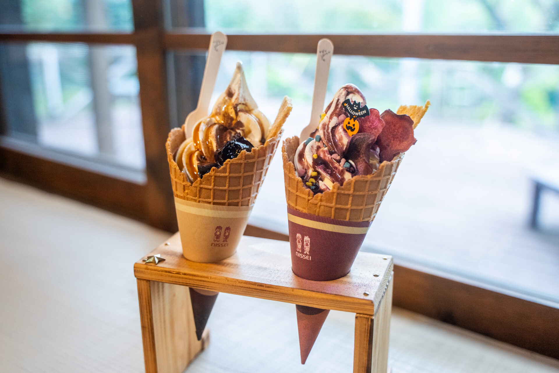 店内のイートインスペースは4席と少なめですが、お庭やテラス席もあるので、天気の良い日は外でゆっくりソフトクリームを楽しむこともできます。