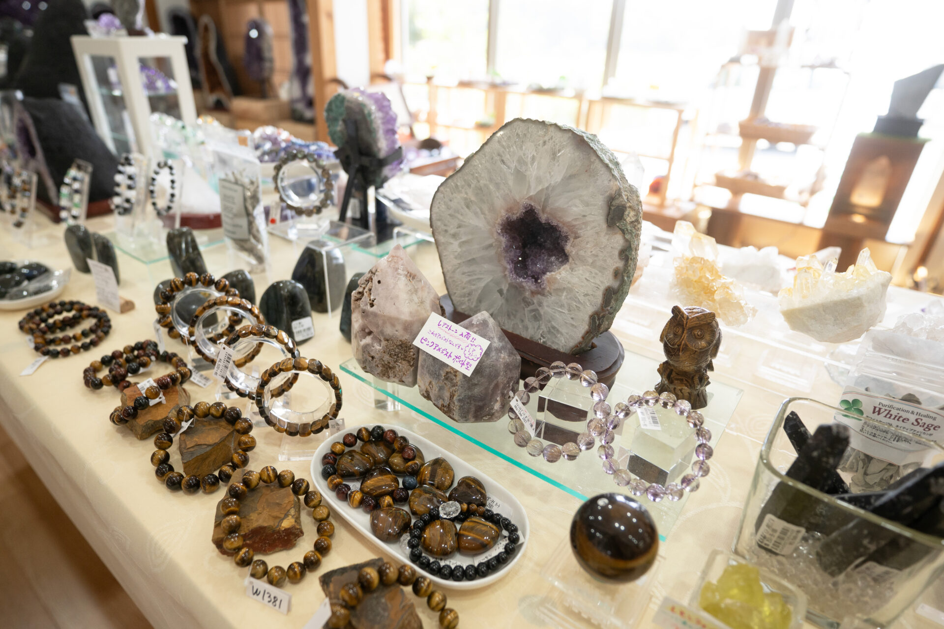 お店の魅力はなんといっても、自分だけの願いを詰め込んだパワーストーンアクセサリーが作れるところ!