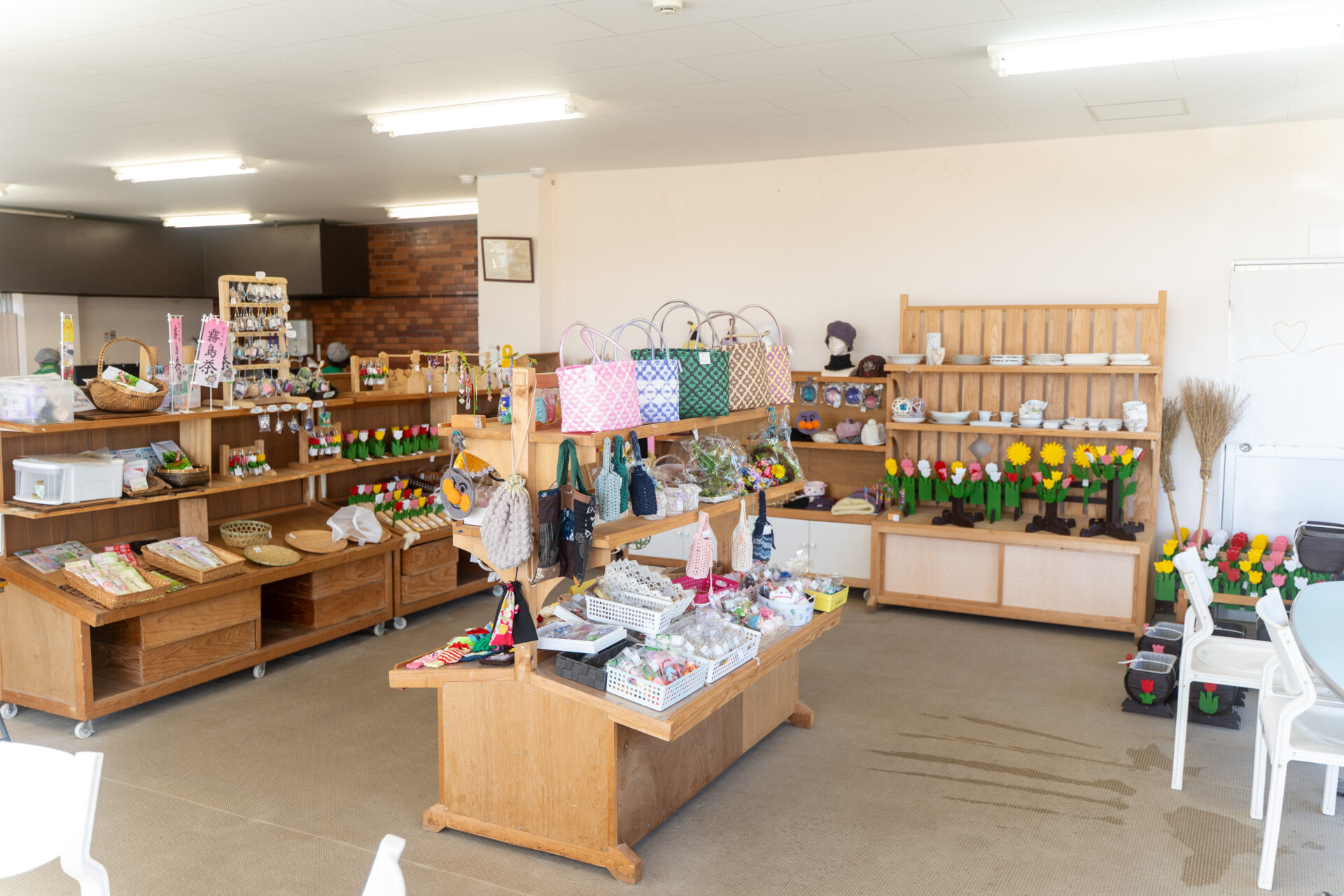 また、霧島市シルバー人材センターの会員さんによるハンドメイド品も取り扱っており、カゴや編み物、小物、木工品など、温かみのあるアイテムが並びます。