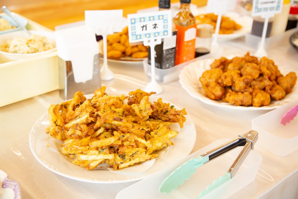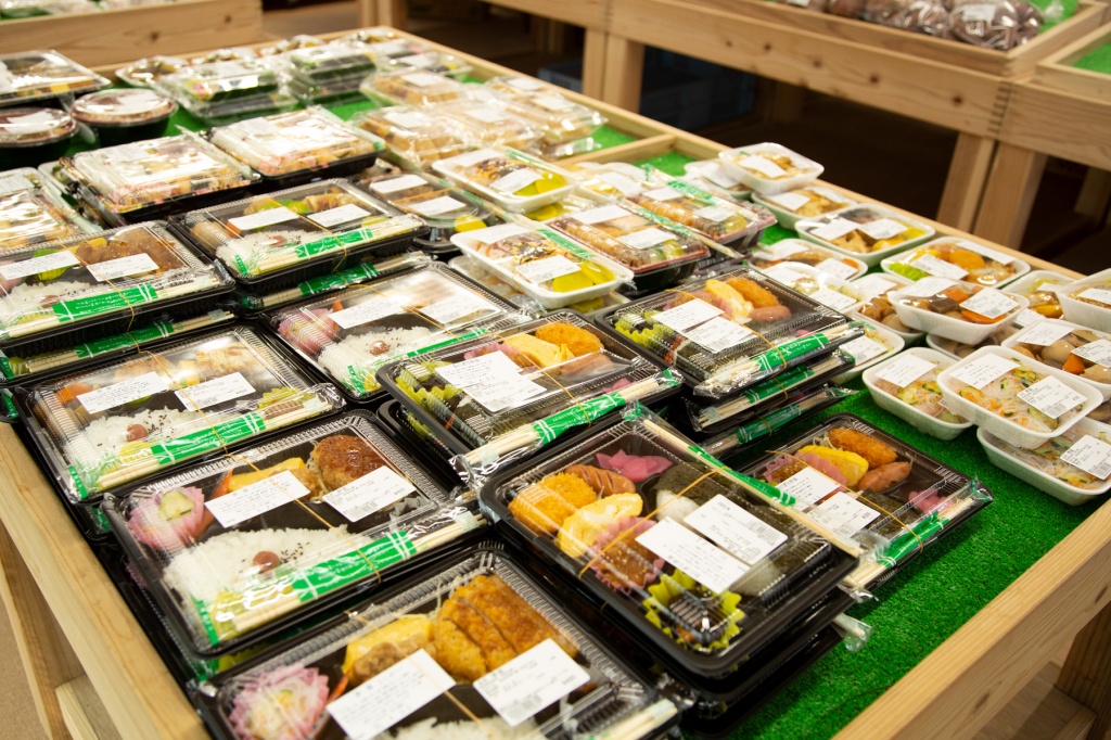 地元の特産品や朝採れ野菜、加工品など物産品がずらりと並ぶ物産館「えがお市場」、豊富なメニューが楽しめるバイキングレストラン「笑顔亭」、ジェラートやソフトクリーム、コーヒーの軽食コーナー「茶ちゃランド」があります。