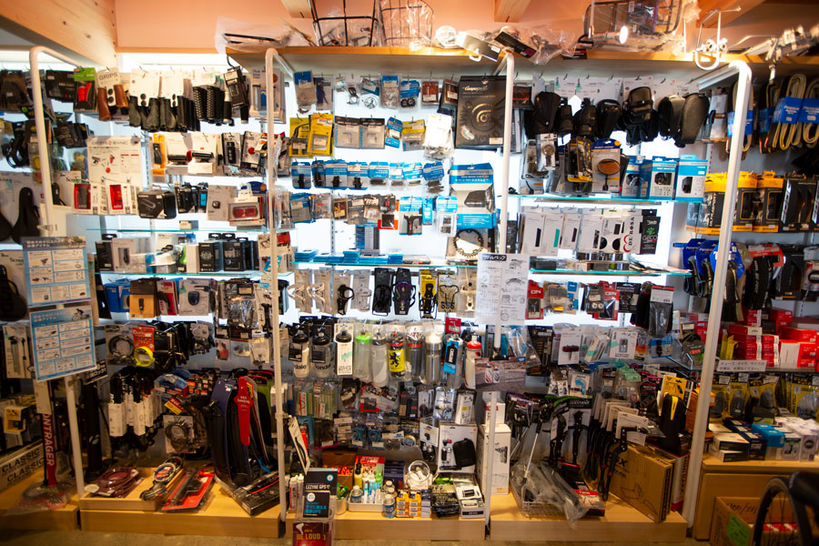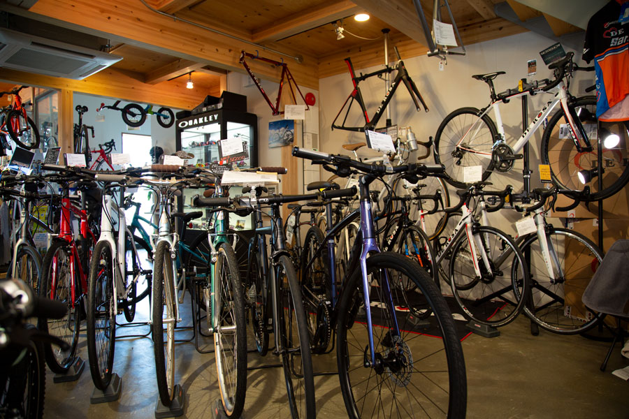 自転車はもちろん、ウエア、ヘルメット、各種パーツなど小物なども揃っているお店になっています。