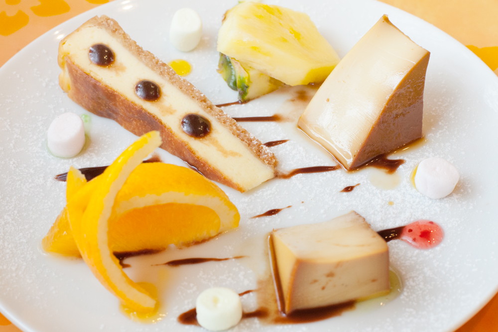 5日間煮込んで旨みをギュッと凝縮させたこだわりのデミグラスソース、デザートのチーズケーキやプリンも全て自家製です。