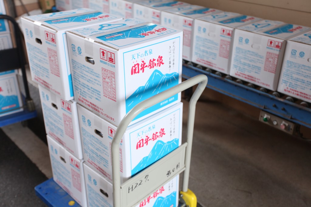 関平鉱泉では、2リットルや500ミリリットルのペットボトル容器でも販売していますが、そのペットボトルの厚さが他のミネラルウォーターよりも厚いのは、ペットボトルに入れる時もまだ熱いからです。