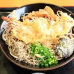 写真は丸岡名物の大エビテンプラがのった「丸岡びっくりそば(800円)」。