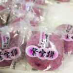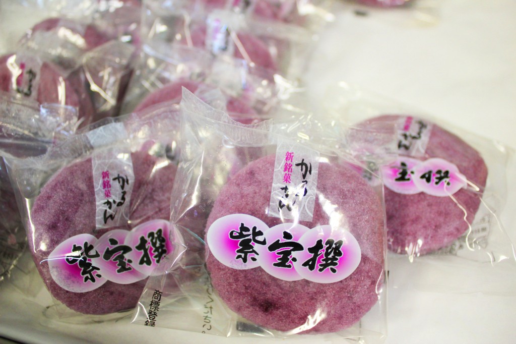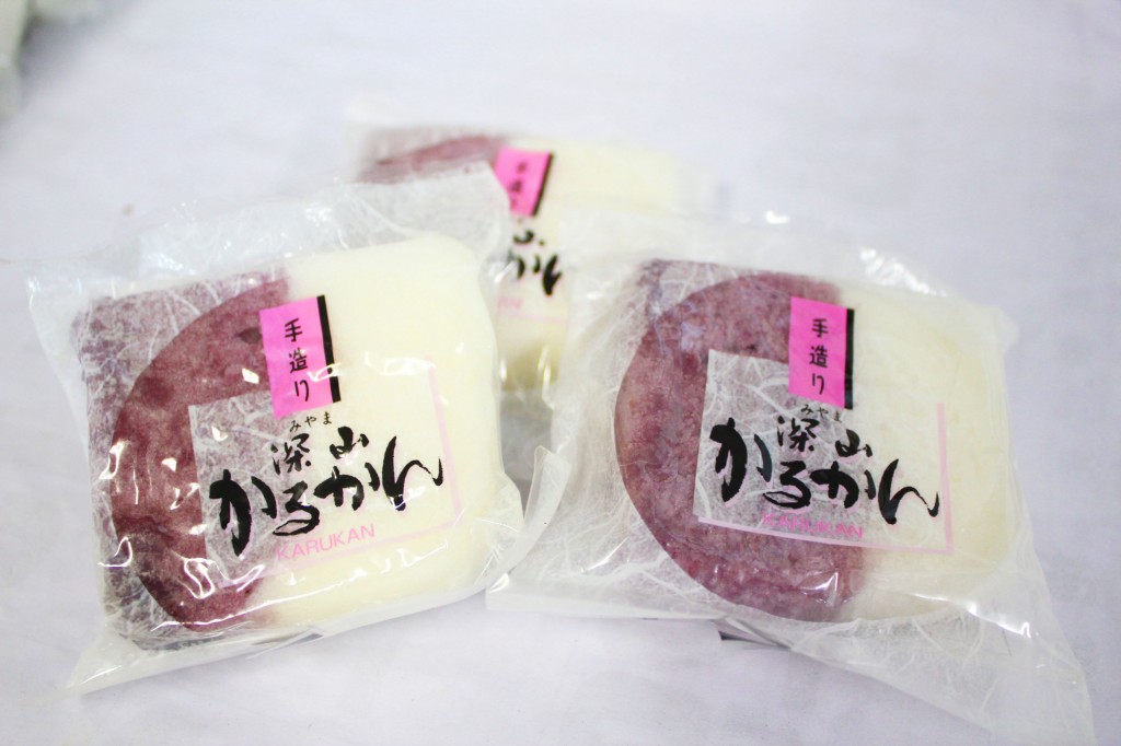 たから屋の「かるかん」は、創業以来、素材にこだわり、「紫ヤム芋」という紫色の天然山いも等を原料とし、ひとつひとつ丁寧に手作業で作られております。