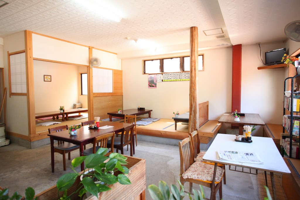 民宿きりしま路の食堂。写真のチャンポン630円は、自然の野菜がたっぷり入っておりとってもボリューミー!