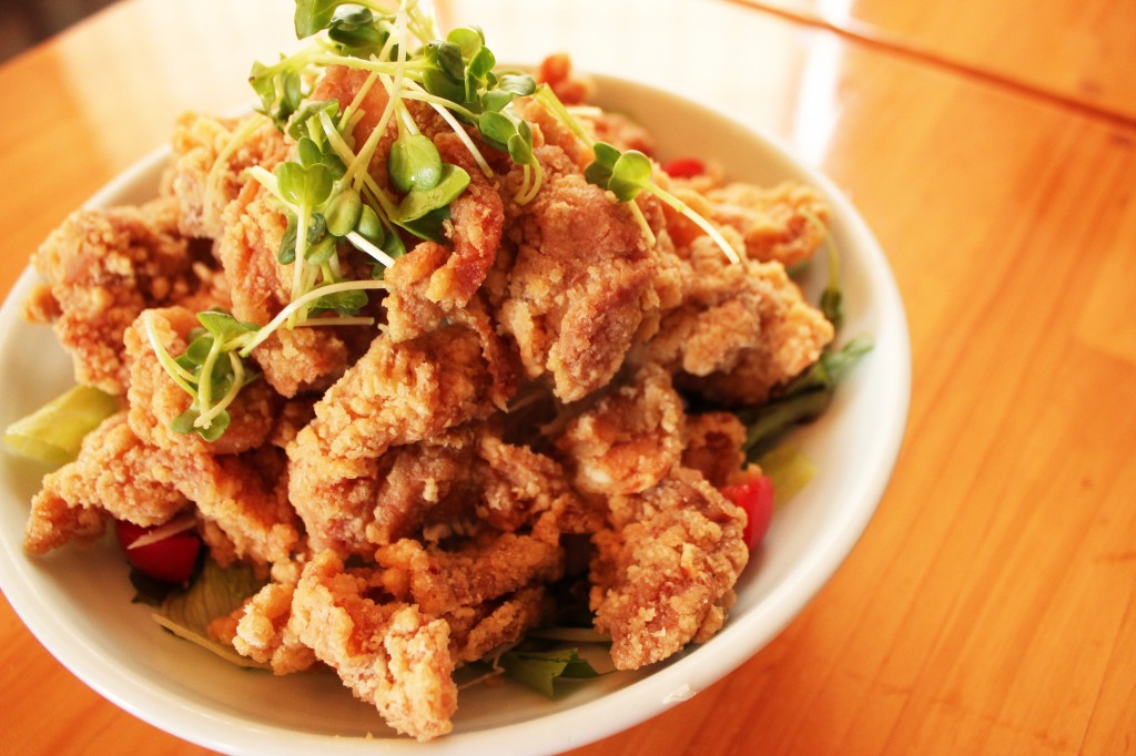 豊富なフードメニューは290円~!オススメは熊七名物の「唐揚げサラダ」。こちらはジューシーから揚げとサラダが山盛りでなんと410円!