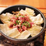 また、サイコロ上にカットされた地鶏を鉄板で焼いて食べる「地鶏の鉄板焼き(515円)」、ピリ辛味噌がクセになる「ホルモンピリ辛味噌炒め(515円)」もオススメ!