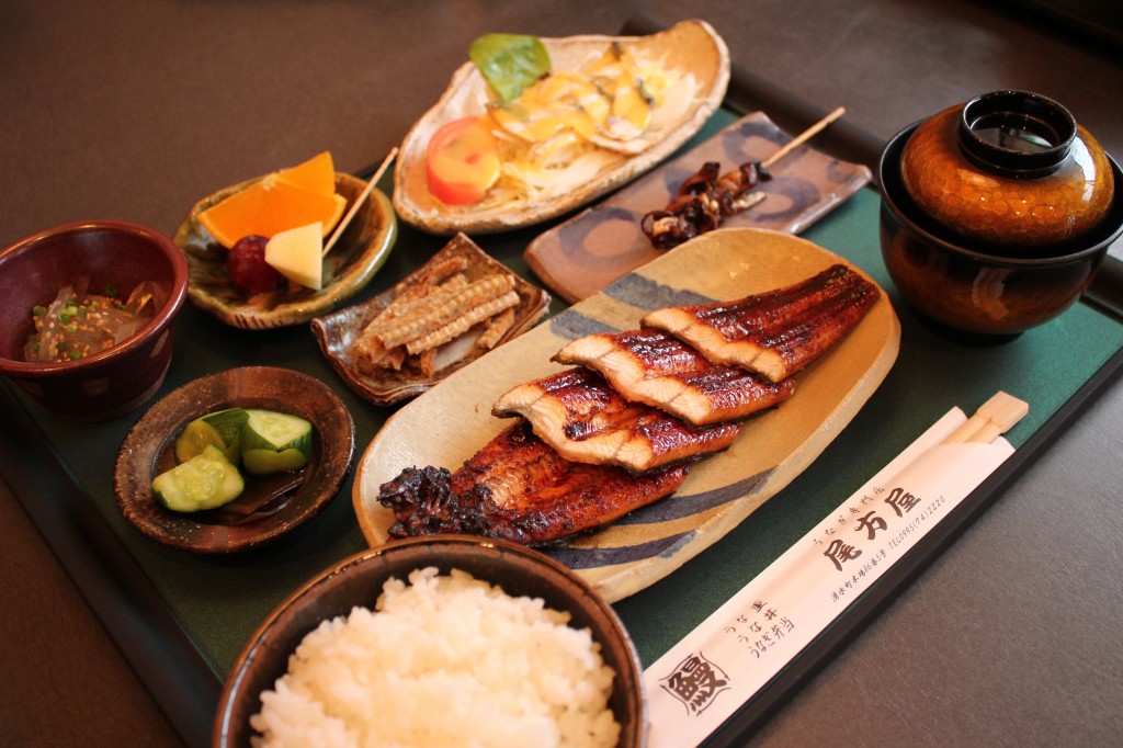 タイヨー栗野店のすぐ近くにあるうなぎ専門店「尾方屋」。