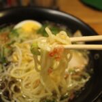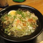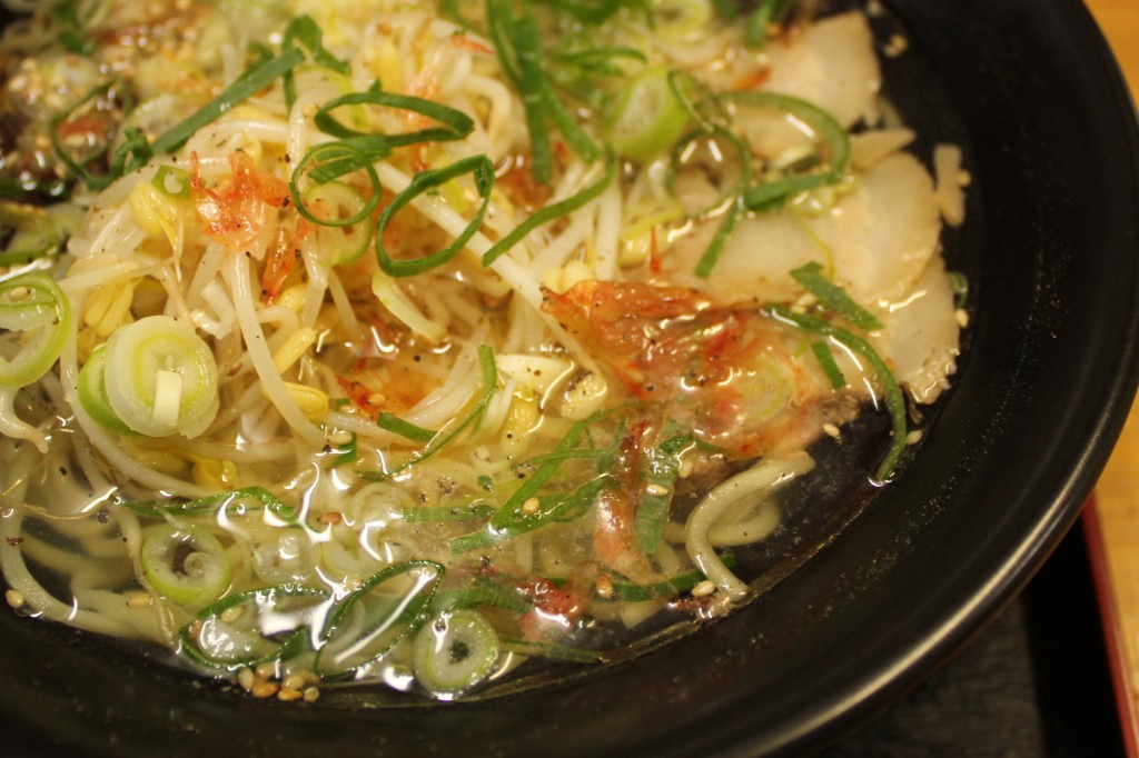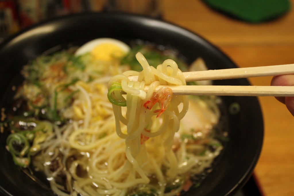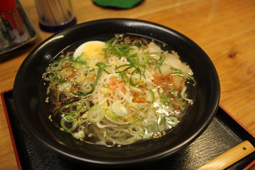 湧水町稲葉崎のラーメン店「のらくろ」 人気の「えび塩ラーメン」は、トビウオ、かつお節昆布でとった透きとおったスープに、香ばしいエビ香油が効いた絶妙な一品!麺も140gとやや多目の為、お腹一杯になりますよ!