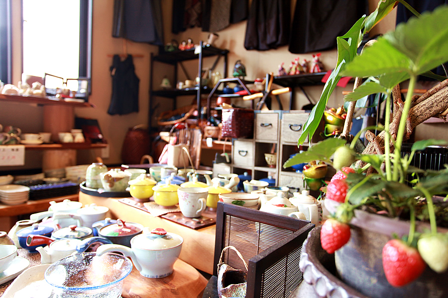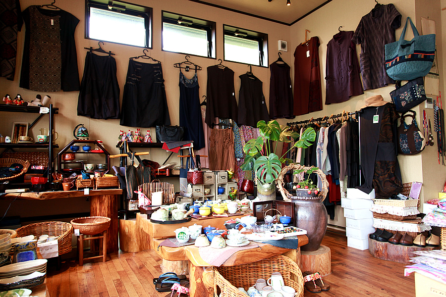 店内にはお菓子の他、あい染、手作り洋服、小物などのギャラリーも設置されております。