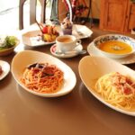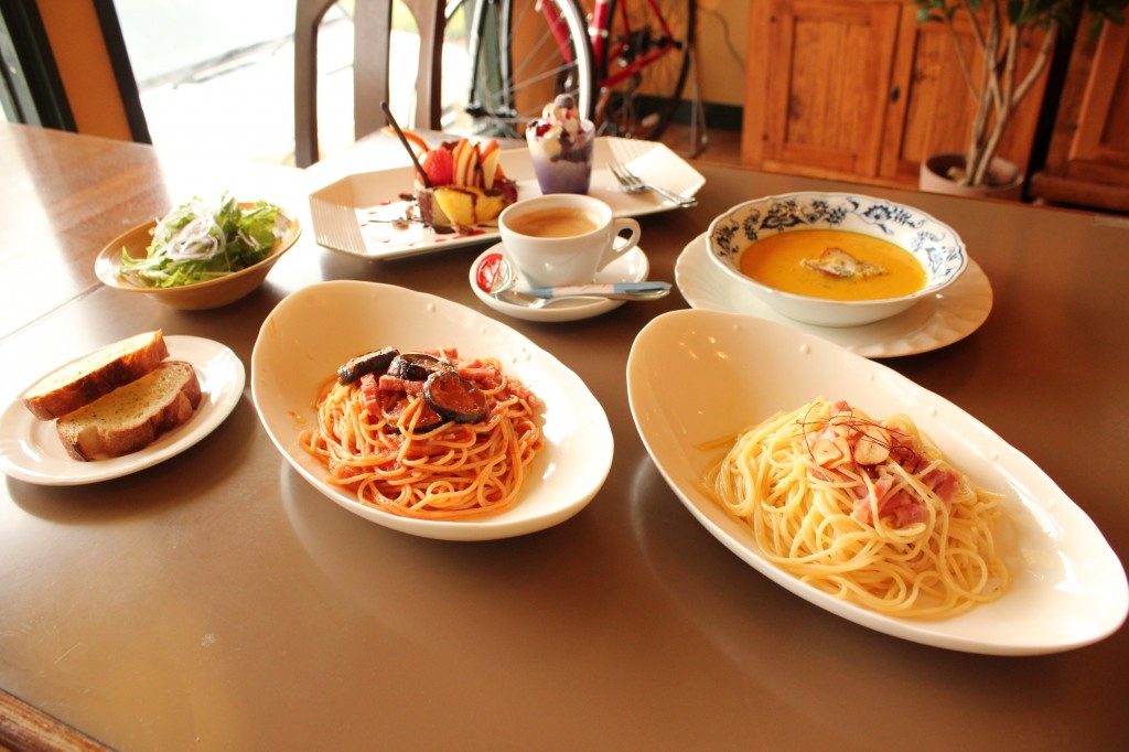 パスタコースは、パスタ、スープ、サラダ、ガーリックトースト、デザート3種、ドリンクが付いて1580円。