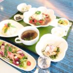 ランチは、メイン、食前酢、前菜、小鉢、ご飯、スープ、デザート、コーヒーがセットで1500円。