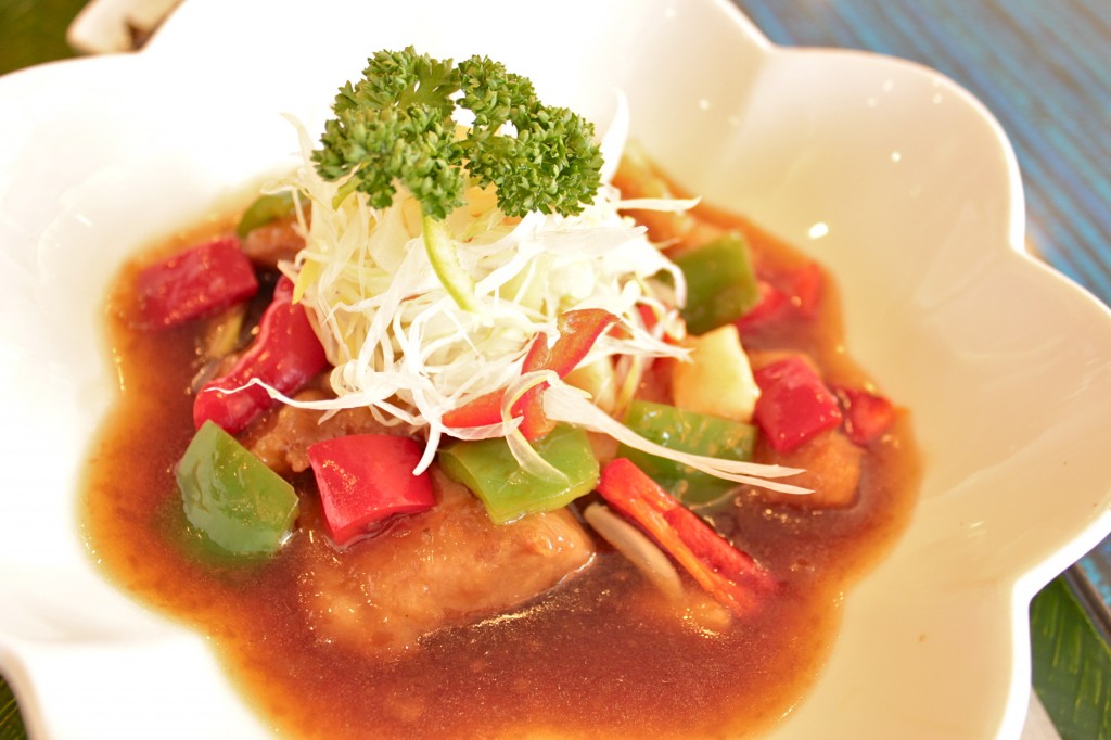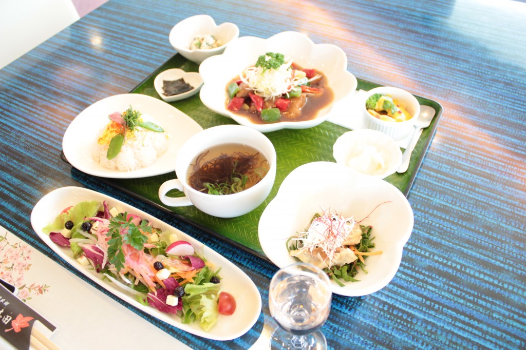 メインは黒豚の黒酢酢豚、とんこつ黒酢煮込み、黒酢トマトソース、白身魚の黒酢あんかけ、黒酢カレーライス、黒酢ロースステーキの中から一品を選ぶことが出来ます。