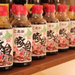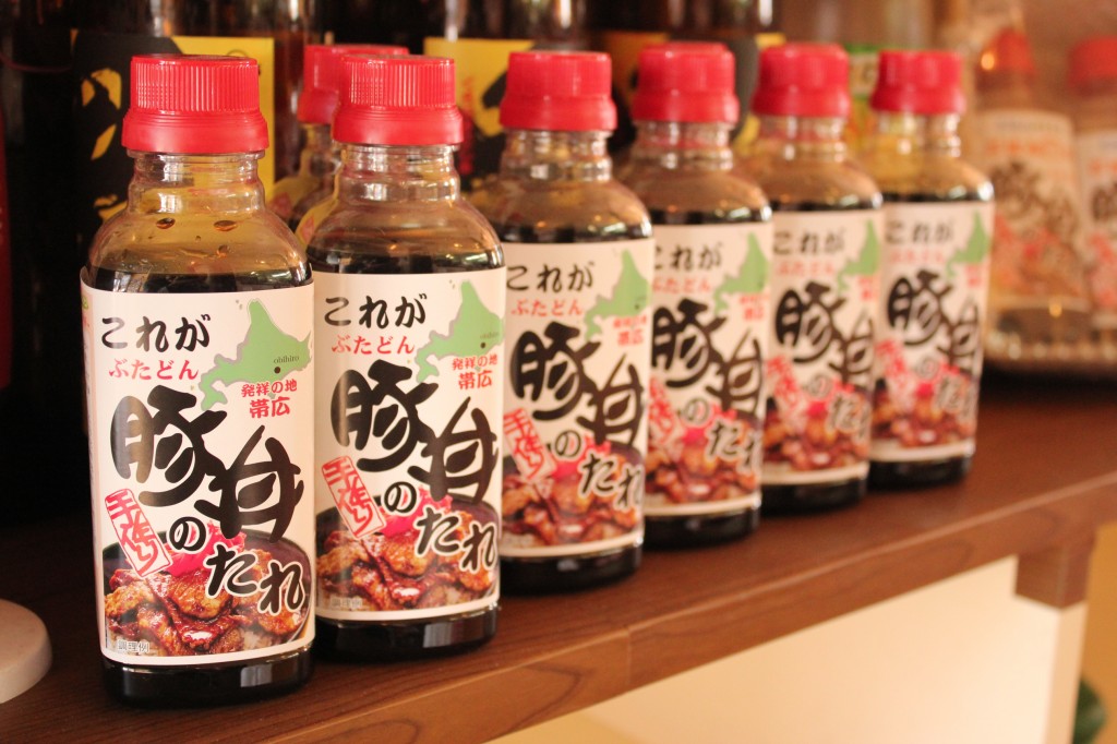 店内でオリジナル豚丼のタレ発売中!1本600円、3本セット1650円です。