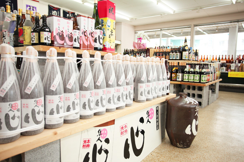 豊富な種類の酒類を取り扱う「樋高酒店」。人気焼酎、プレミア焼酎も置いております。
