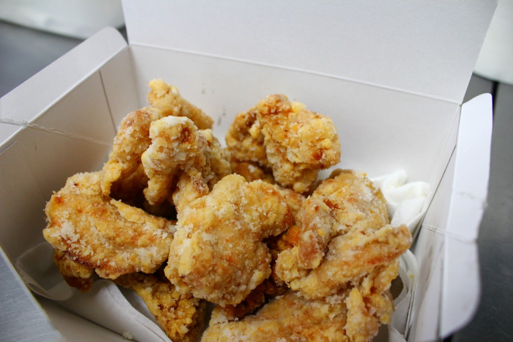 道路沿いにあるため気軽に寄れるのがポイントで、その手軽さと注文を受けてから調理される出来立てアツアツのおいしさから、連日人が多い人気店となっています。