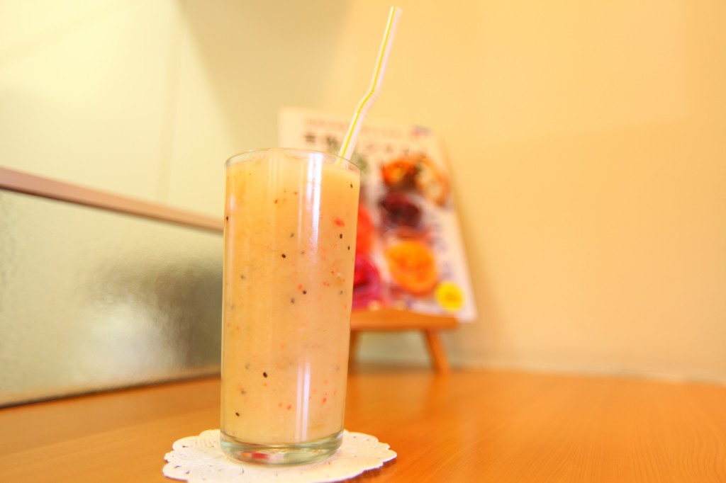 ミックスジュースはリンゴ、イチゴ、キウイ、パイン、バナナを使っていてとても飲みやすくバランスのとれた味わいでした!