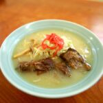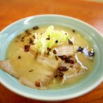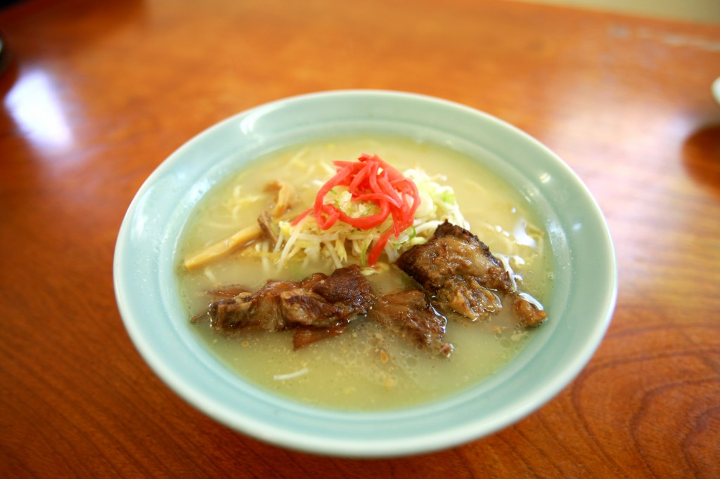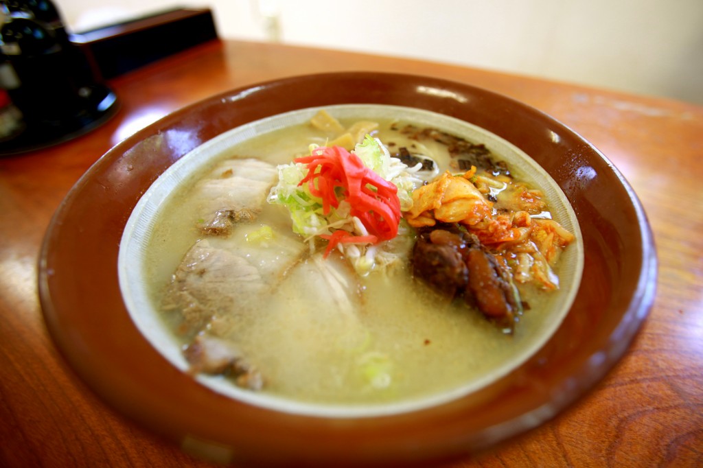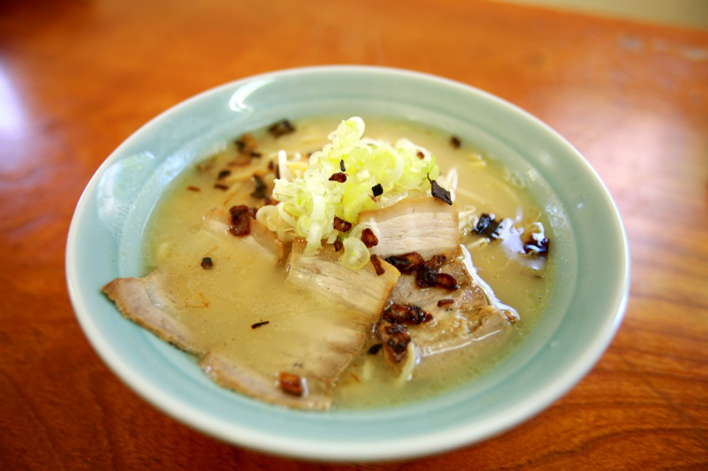 看板どおり豚骨ベースのラーメンで、麺は縮れ麺を使用。スープはややアッサリ系で、チャーシューも味が良く染み込んでとても美味。