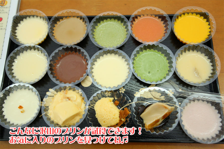 「お客様の口に合うプリンをお買い上げ頂きたい」という思いから、全商品の試食が可能!沢山の種類の中から、自分の好みのプリンを探すことが出来ます。もしかすると試食だけでも満足しちゃうかも・・・。