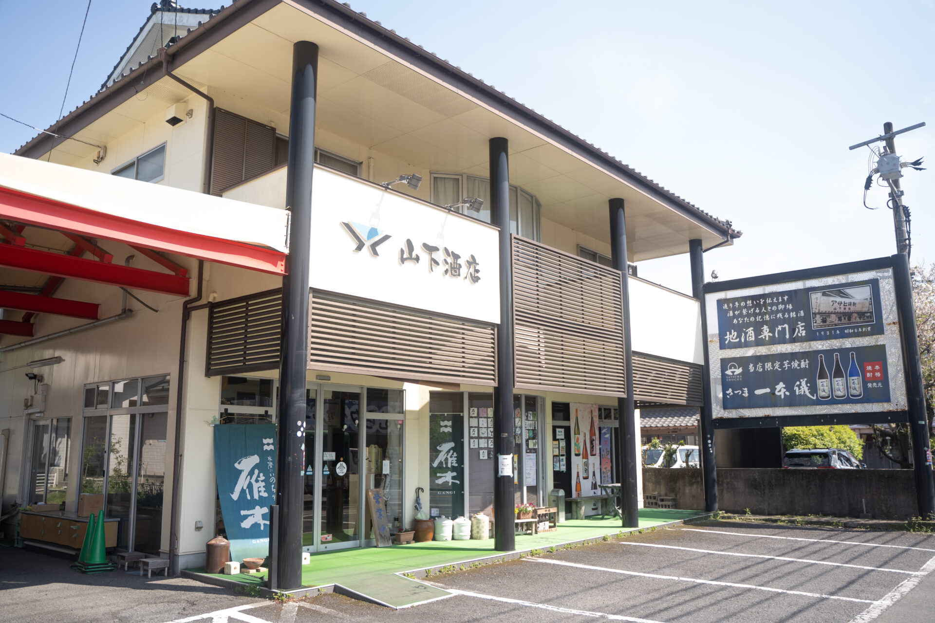 鹿児島空港から車で約15分、温泉街・日当山のほど近くにある「山下酒店」は、昭和6年創業の老舗地酒専門店。地元・霧島の人々に愛され続け、観光客からも高い人気を誇るお店です。