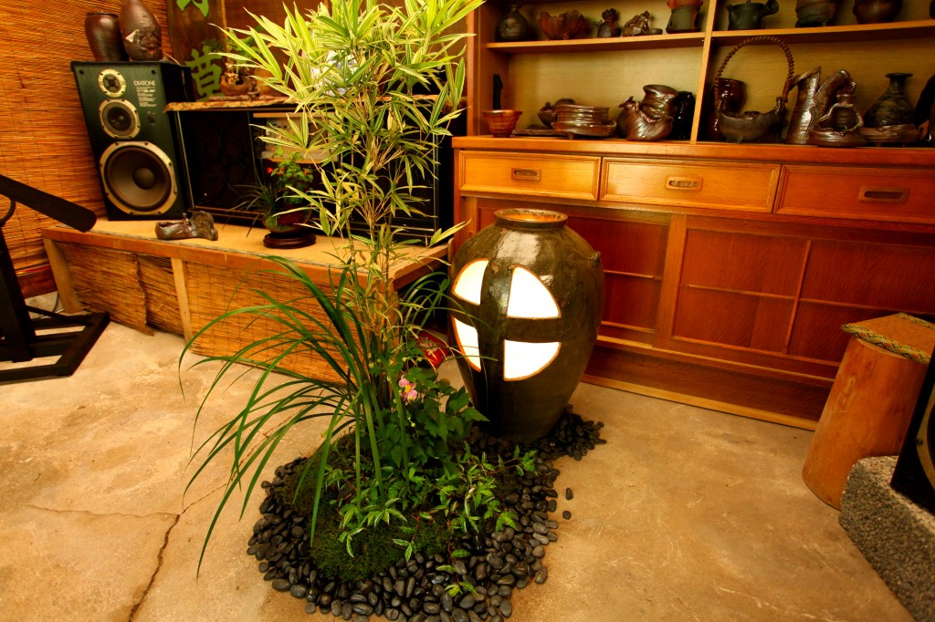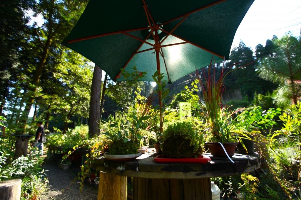 苔玉や、苔盆栽の専門店。店内には、大小様々な作品が並んでおり、選んでいるとついつい長居をしてしまう雰囲気です。