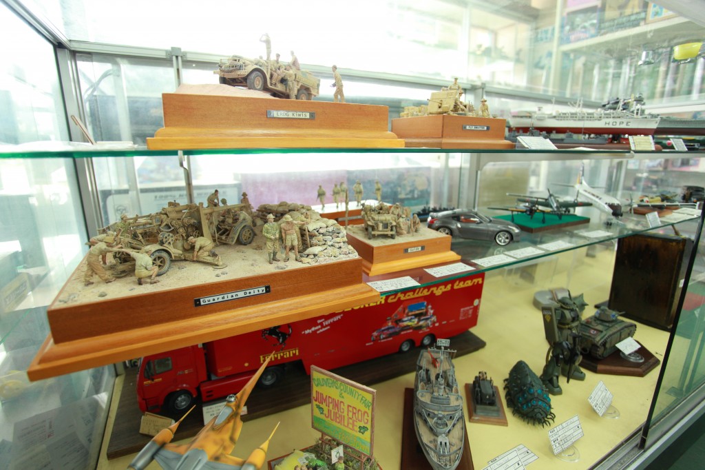 店内には、本格的なディスプレイ模型・材料がズラリと並んでおります。素晴らしい完成品、コンテスト作品も常時展示中です。