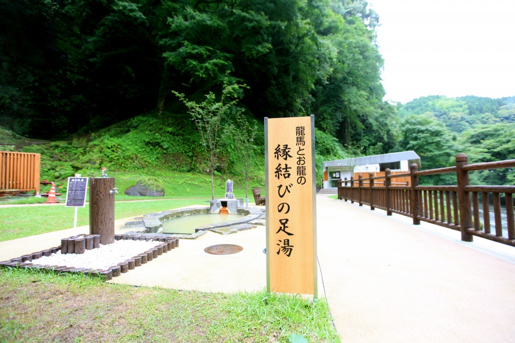 坂本龍馬とお龍が新婚旅行で訪れたことで有名な塩浸温泉。坂本龍馬・お龍の縁結びの湯」と呼ばれる無料の足湯があります。