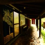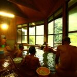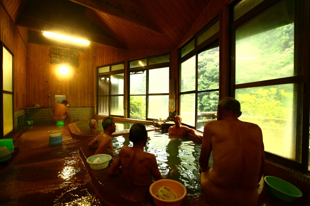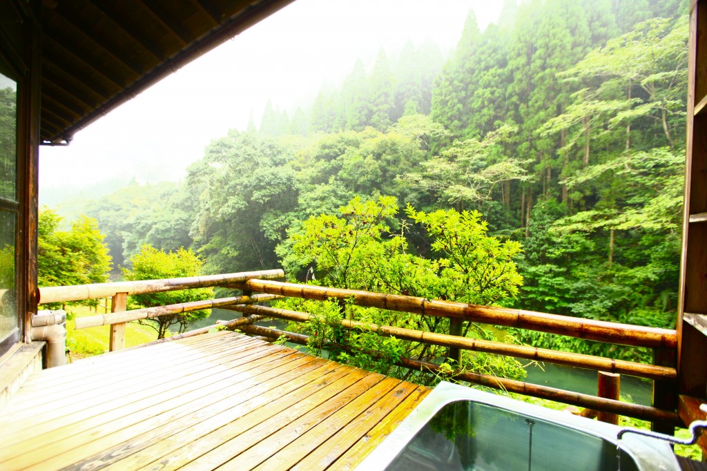 切り立った渓谷の川岸にあり、斜面に茂る木々を眺めながらゆったりとお湯につかる事ができる。