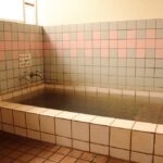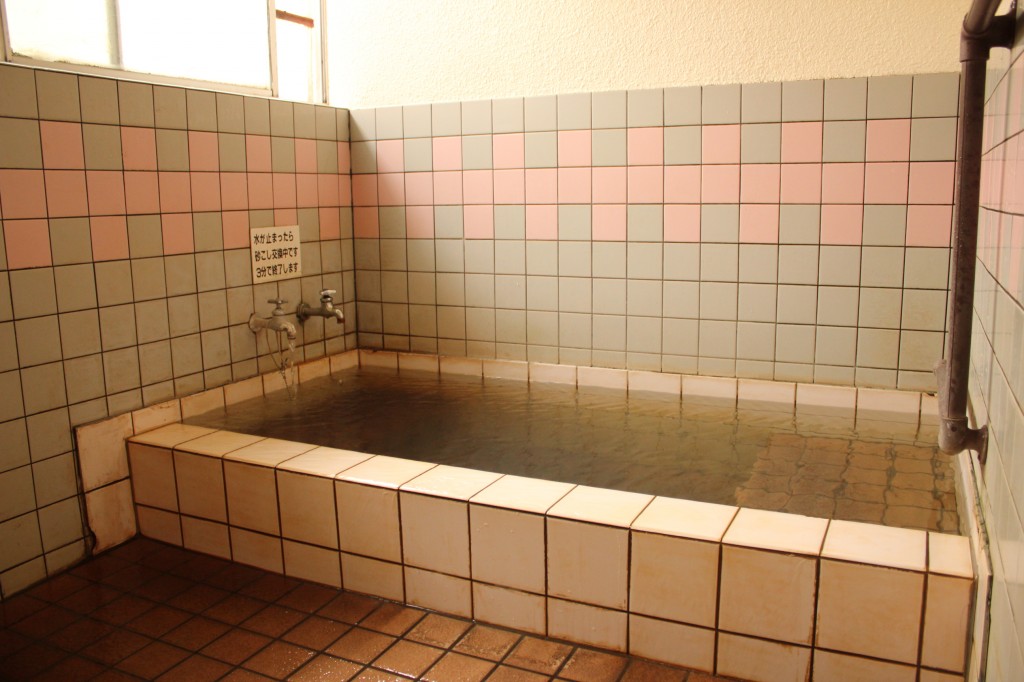 日当山温泉郷の街中にある赤い入り口が目印の家族湯。料金は一人300円、四名までは400円で入ることが出来ます。