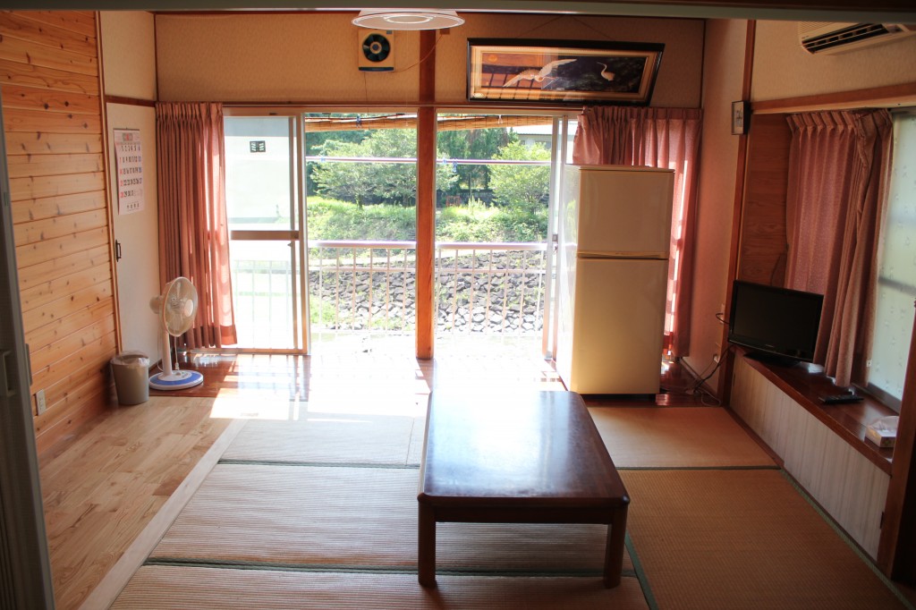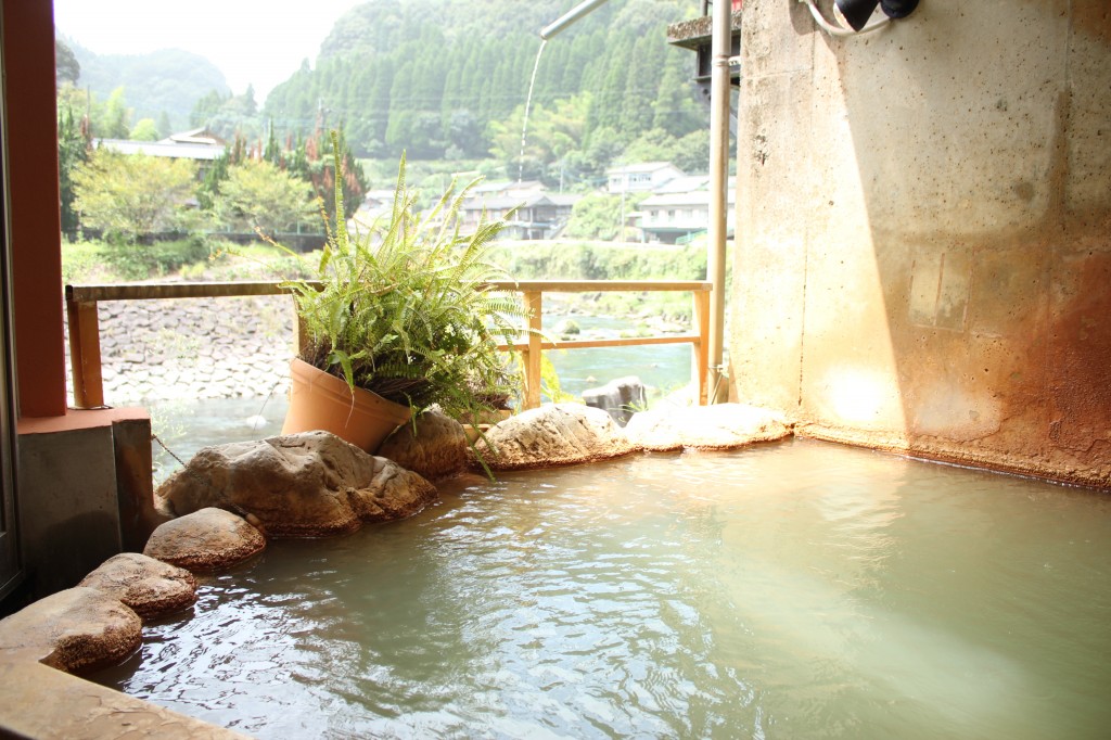 温泉には、内湯、露天風呂、打たせ湯があります。宿泊施設もあり、部屋からは悠々と流れる天降川を見下ろすことが出来ます。