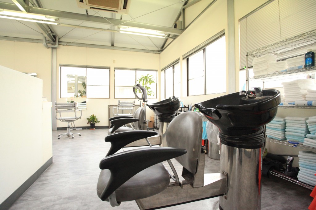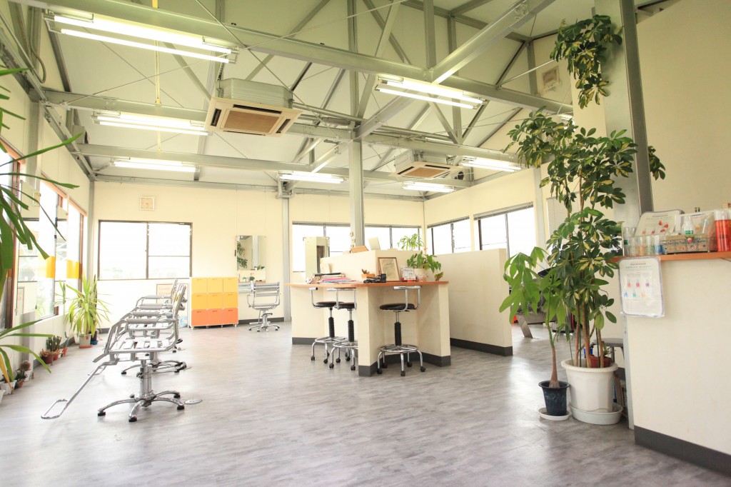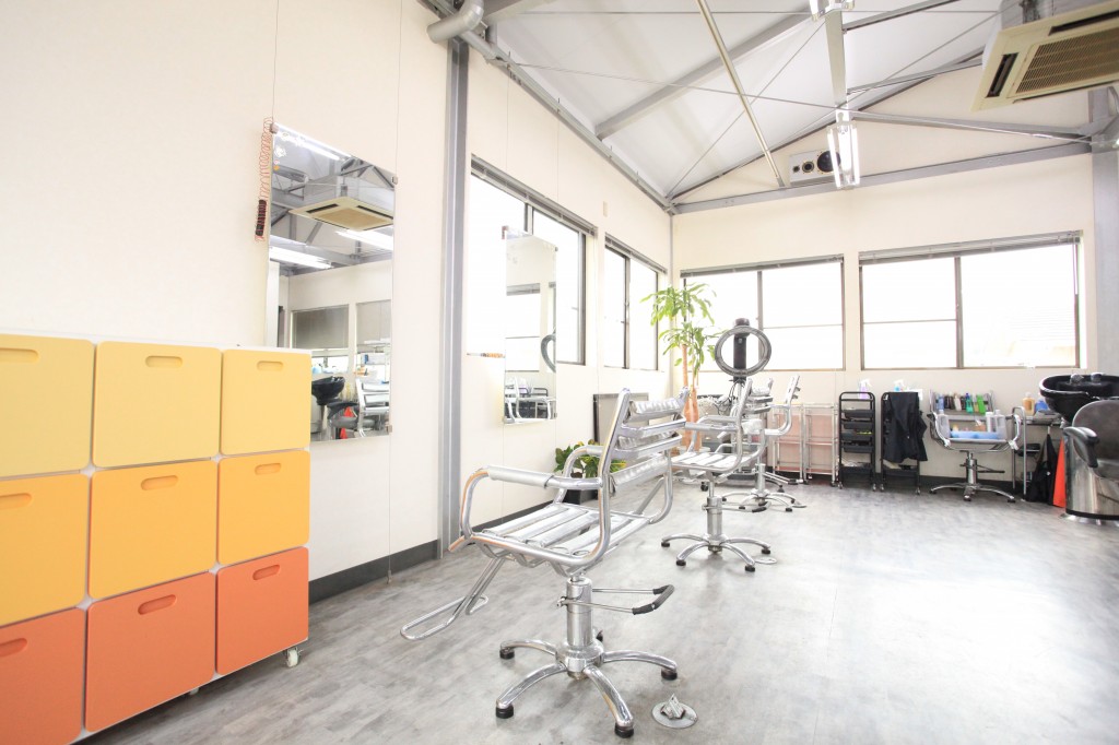 隼人町見次にある美容室utt(アッツ)。開放感のあるスタイリッシュな店内が特徴的です。
