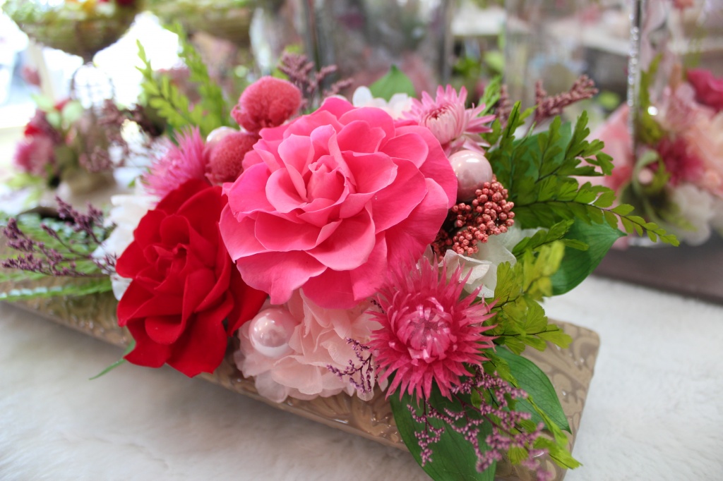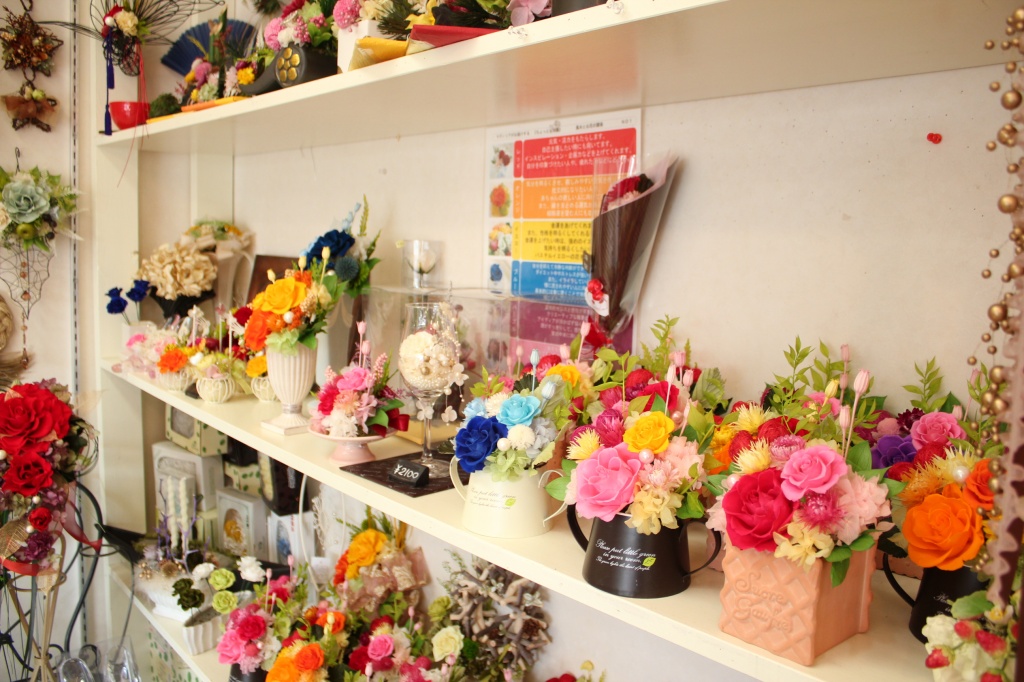 生花をなるべく生花に近い状態に特殊加工した花のプリザーブドフラワーを製作、販売しているかわいいショップです。