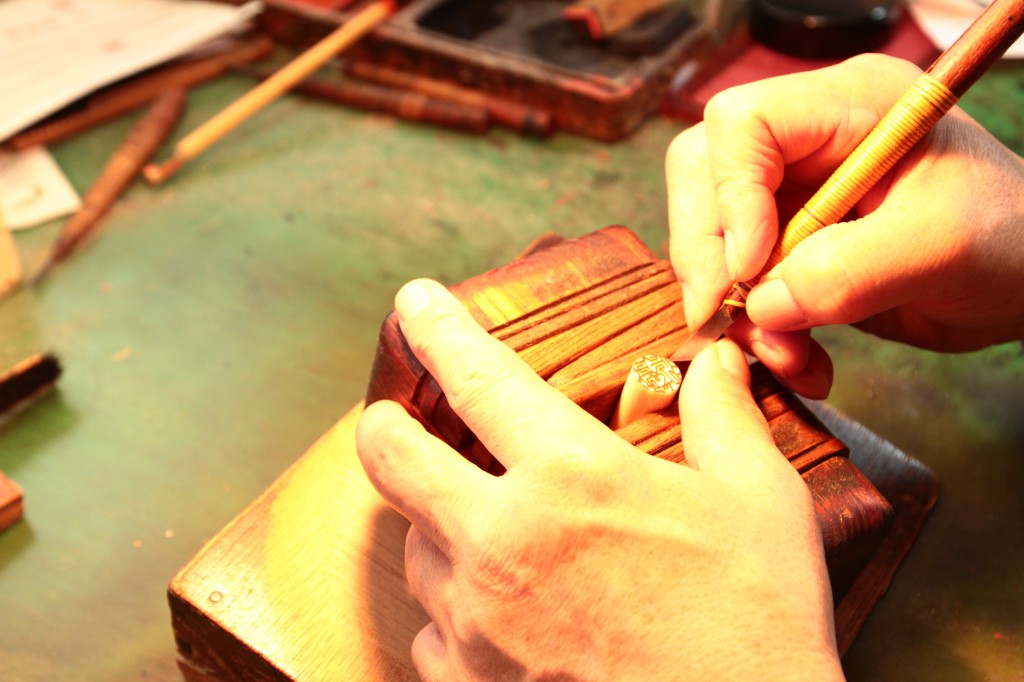 全ての行程を自分で行っている「堀切印章堂」。奥で行われているのはゴム印や印鑑などの製作。ひとつひとつを作る様子は正に匠!印鑑のことなら「堀切印章堂」へ!
