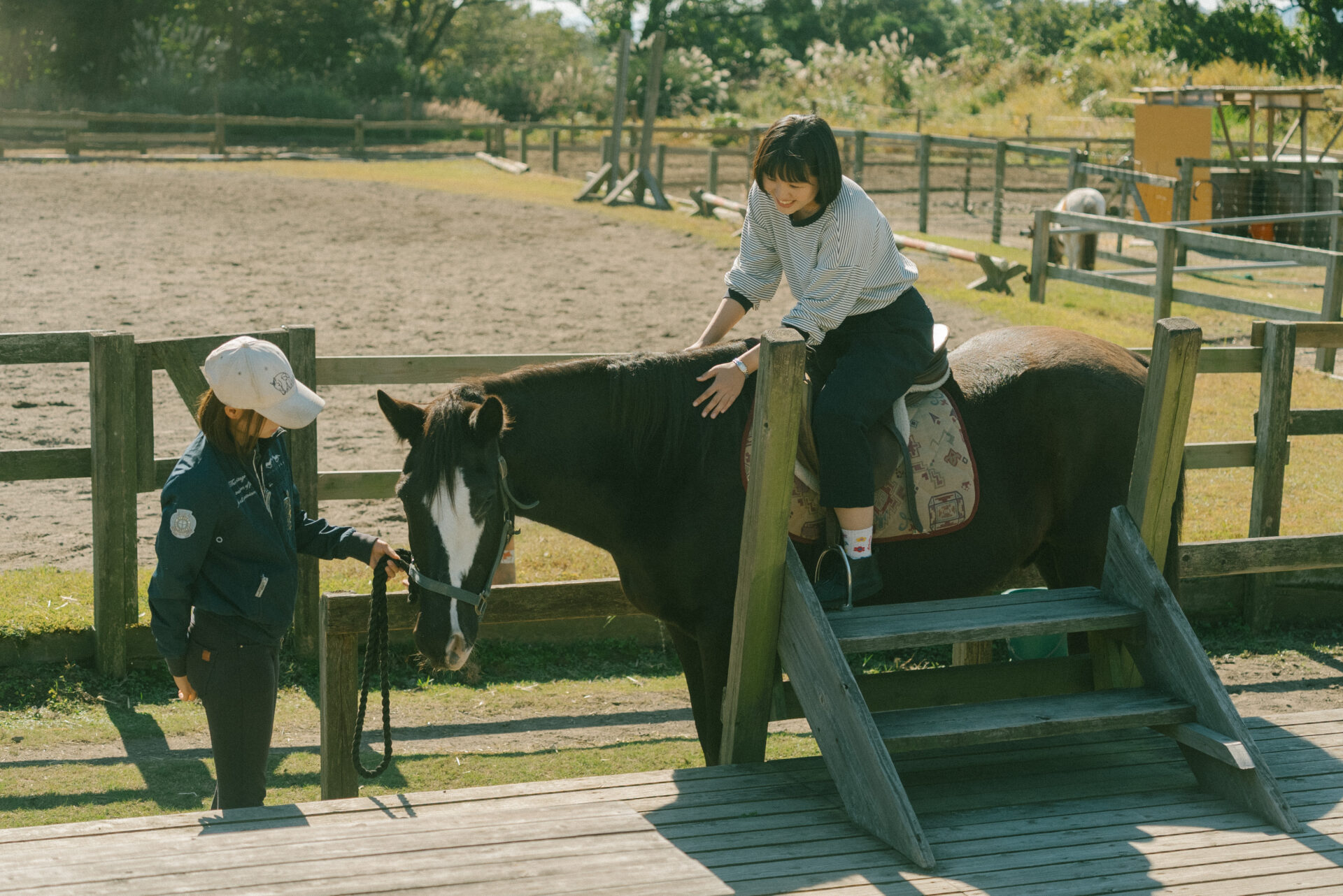 スタッフの方が隣を歩いてサポートしてくださるので、安心して乗馬体験を楽しめます🥰※※小学校3年生以上対象
