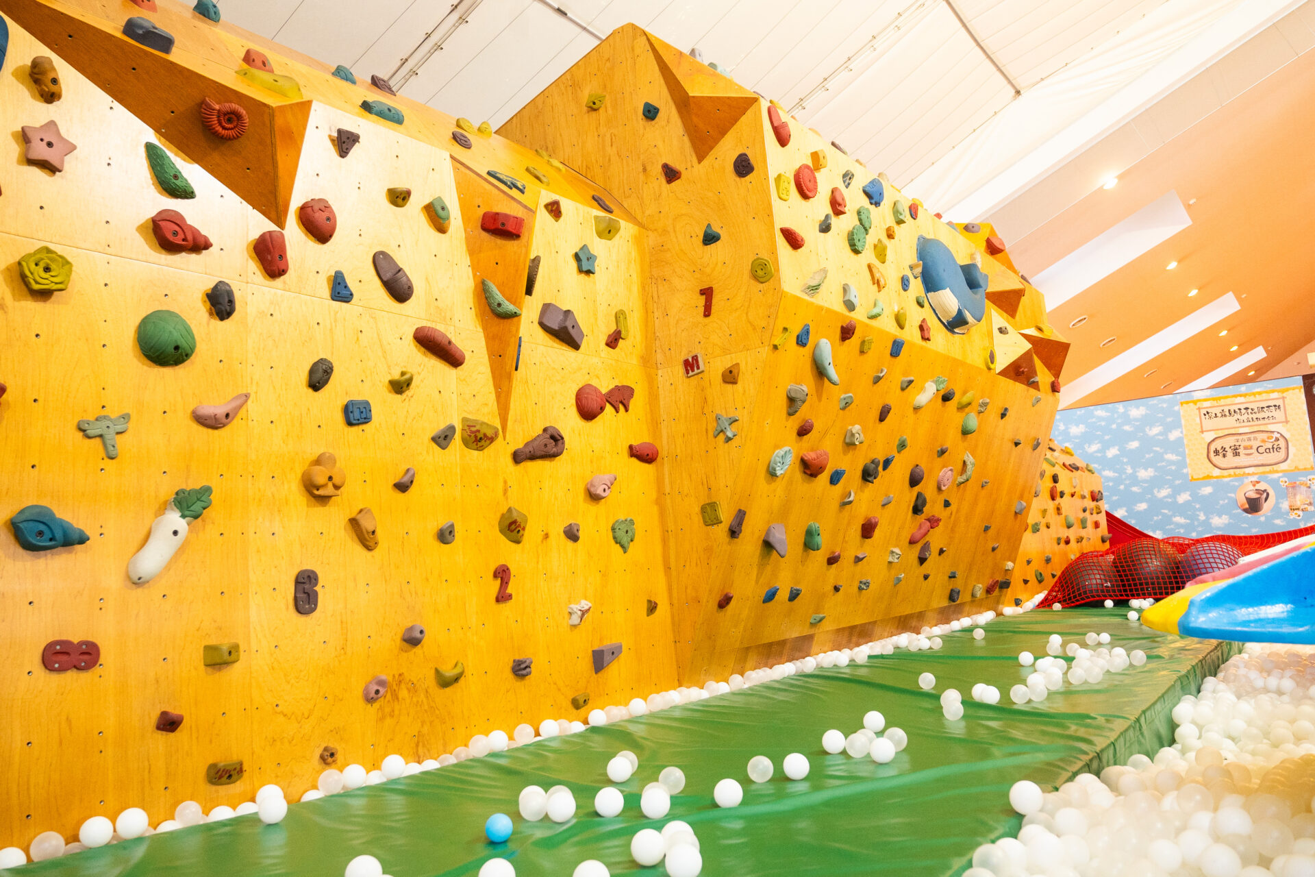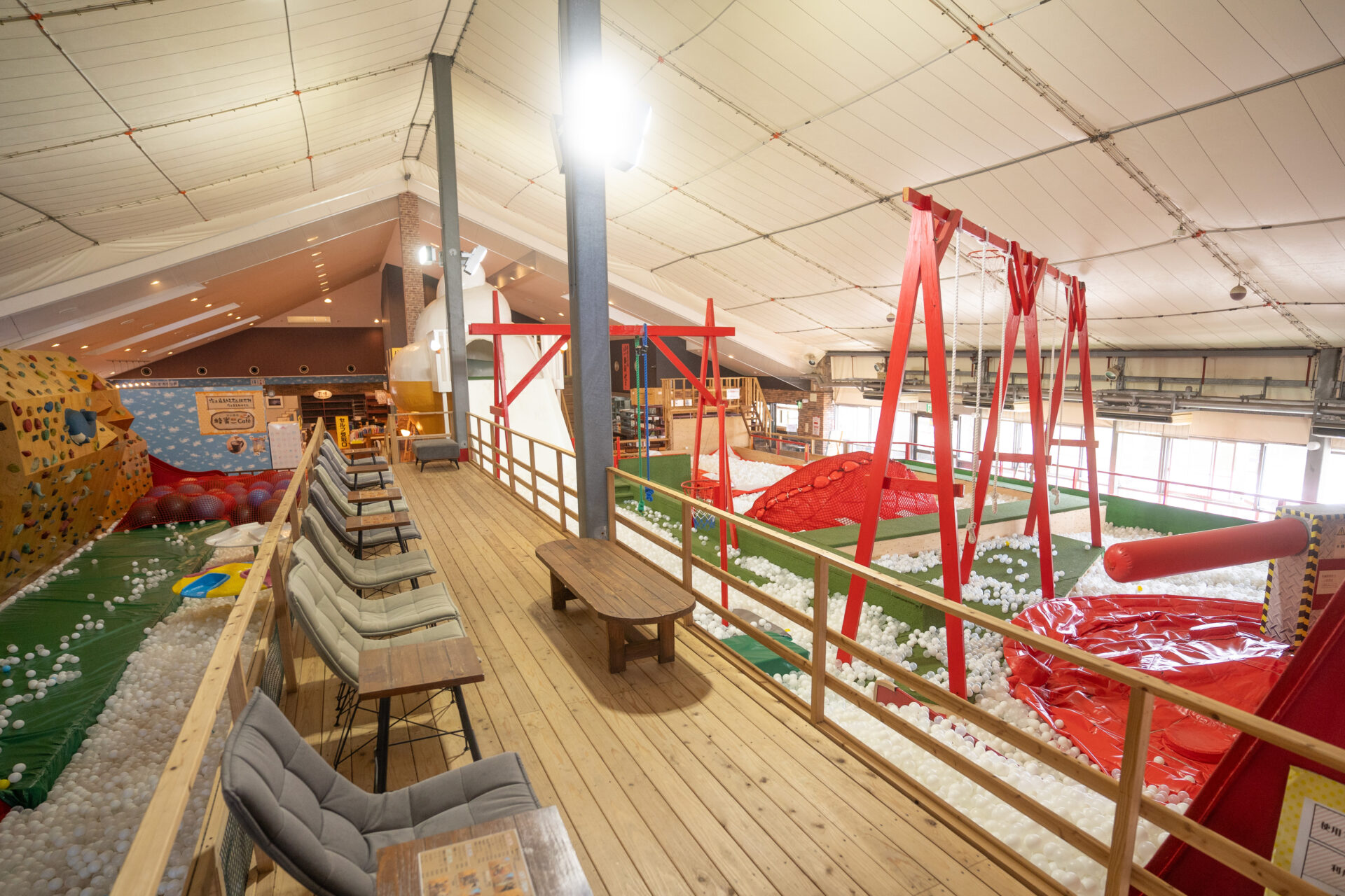 「深山霧島キッチンの遊び場」は、天候を気にせず一年中楽しめる屋内遊具施設です。約70万個ものボールが広がる“ボールの海”のようなボールプールをはじめ、高さ4mのすべり台やボルダリングなど、体を思いきり動かせる遊びが充実しています。