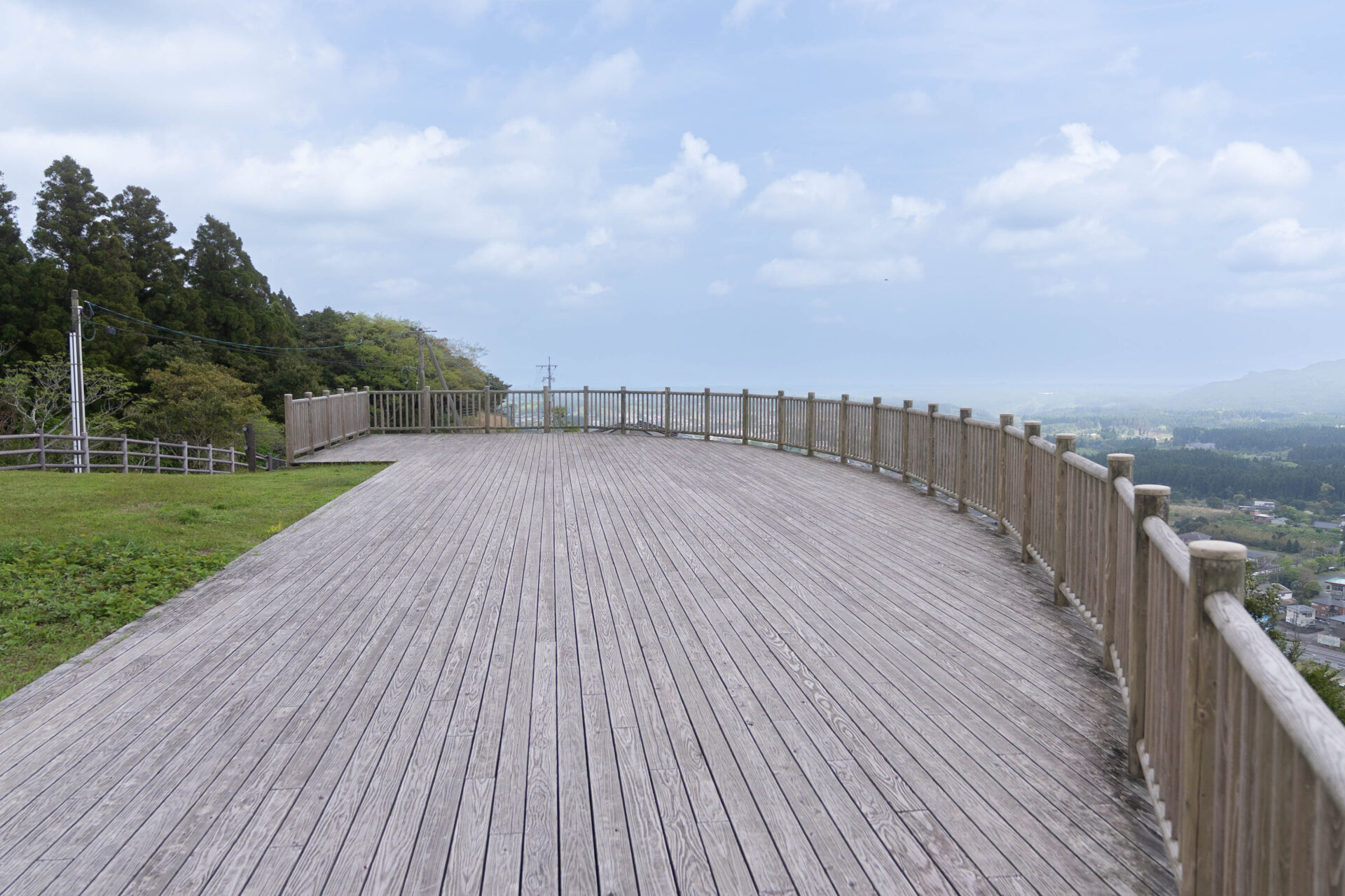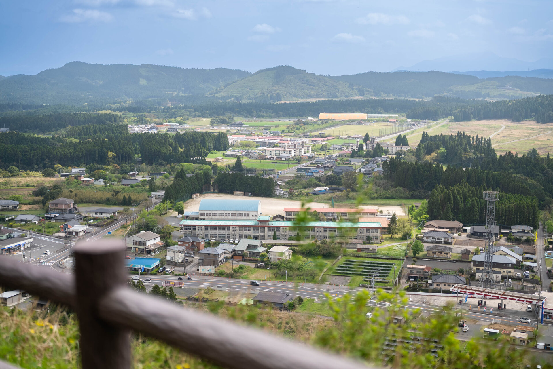 標高約480メートルの高台にあり、展望台からは桜島、霧島連山、志布志湾まで一望できます。